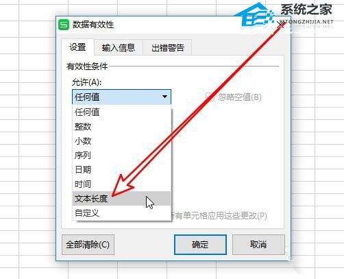 6、将打开数据有效性窗口,并在窗口中设置相应的值。