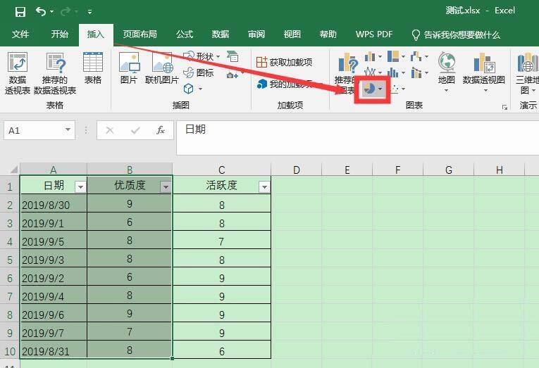 4、然后在图标中点击饼图图标