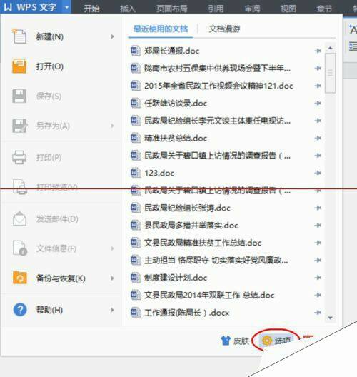 2、在点击【WPS文字】后弹出的菜单下,点击选择【选项】。(如图所示)