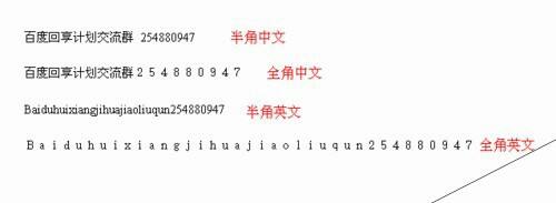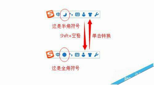 2、下面是全角和半角情况下,输入法的状态及打印出来的字符状态。