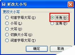 3、在弹出的对话框中点击“半角”,然后点击下方的“确定”按钮。