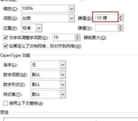 这时我们也可以在“间距”中设置“加宽”还是“紧缩”: