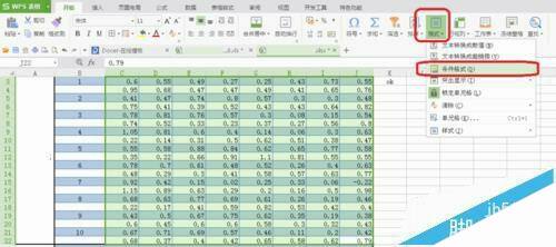 2、然后,依次点击“开始”中的“格式”,及下拉选项中的“条件格式”(根据实际情况也可选择点击“突出显示”)。