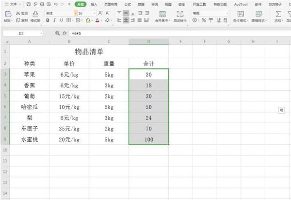 2.首先在需要输入计算结果的单元格,也就是D3单元格中输入“* 6*5”,需要注意的是“*”号后面带一个空格,它的意思是将B列和C列中的数字提取出来:
