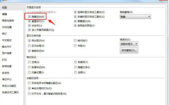5、在页面选项里面有一个【隐藏空白】的勾选项,默认是不勾选的