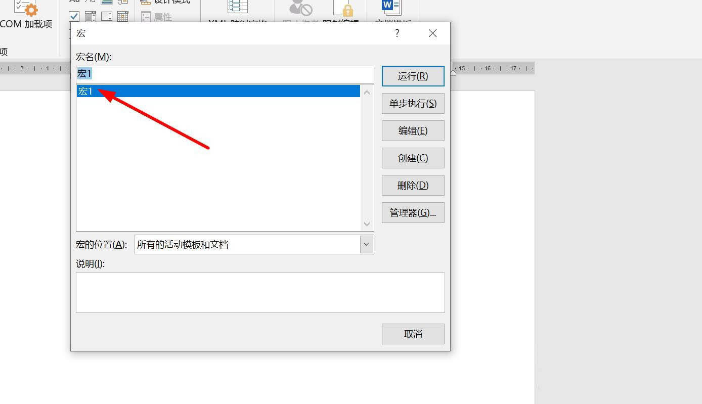 5、鼠标双击宏的名字,这里双击“宏1”。
