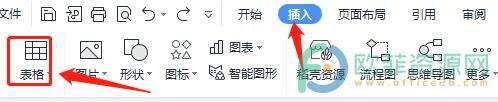 3.会弹出表格的选项卡,用户可以在表格的绘制页面上选择一行两列就可以在文档上成功插入表格