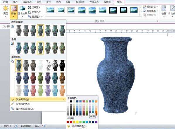 5、执行格式-颜色-其他变体颜色命令,从颜色菜单中选择蓝色,查看效果变化。