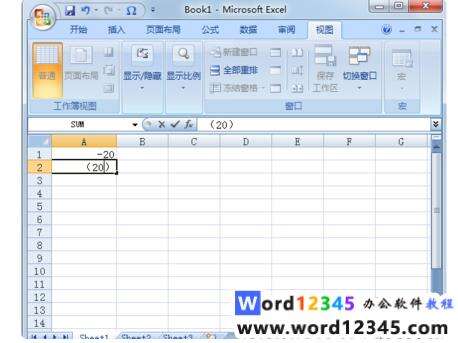 3、在excel工作表中,直接输入-20,显示结果就是负数-20。负号就是键盘上面横排数字0右边的键,在中文状态下输入。