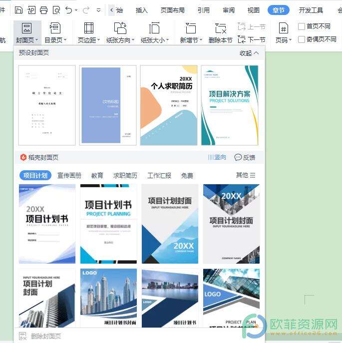 3、最后,弹出的窗口中有多种封面格式,点击下方删除封面页按钮就可以了