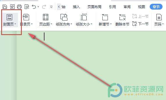 如果在文档中添加了封面页之后需要将已经添加的封面页删除,可以将工具栏中的章节打开,然后在打开的菜单栏中点开封面页图标,最后点击窗口中的删除封面页按钮就可以了。