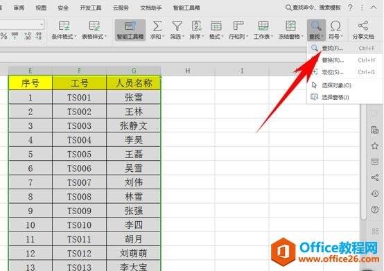 首先,我们选中所有数据,单击工具栏的查找,如下图所示。