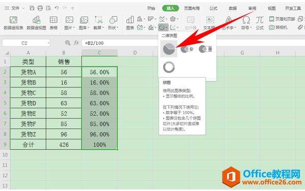 以上是为您收集整理的【WPS excel添加二维饼图的方法】办公软件教程的全部内容,希望文章能够帮你了解办公软件教程WPS excel添加二维饼图的方法。