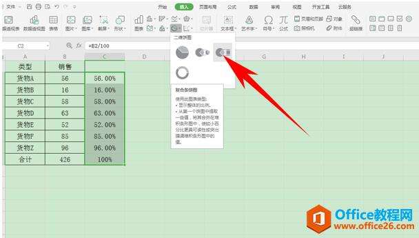 如果觉得太过单调,也可以选择插入复合条饼图,如下图所示。
