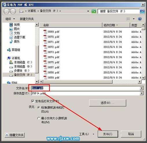 第3步、文件名随你取,保存类型为PDF格式。点击发布。