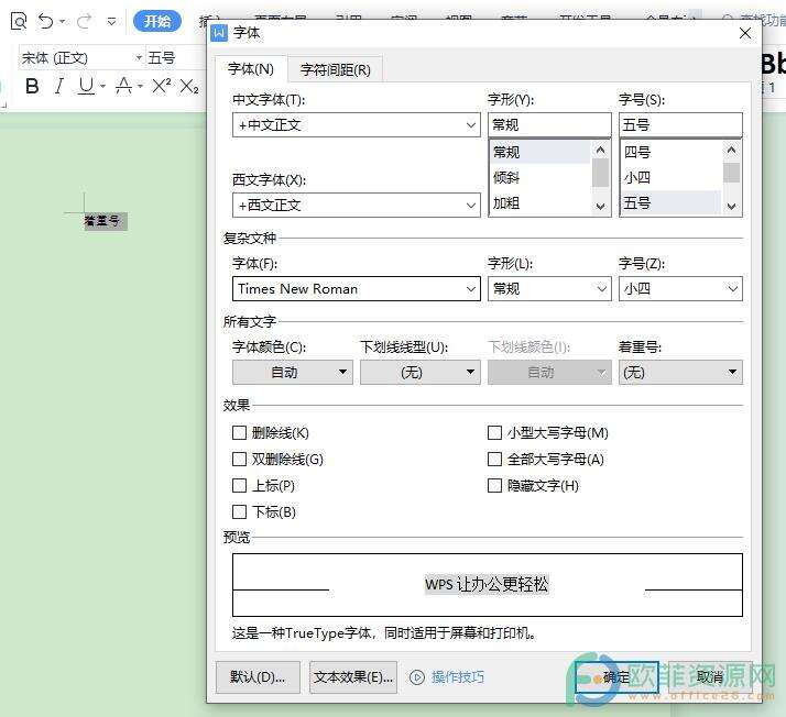 3、然后在窗口中将着重号选项展开,再选择一种着重号的标志