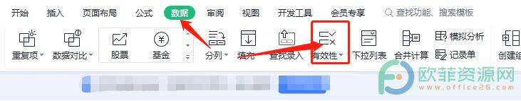 3.点击后在有效性图标的下方会弹出下拉框,选择其中的有效性选项,会弹出新窗口