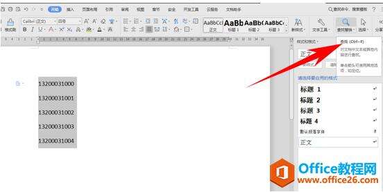 首先,我们先选中所有数字,然后单击工具栏查找选项,如下图所示。