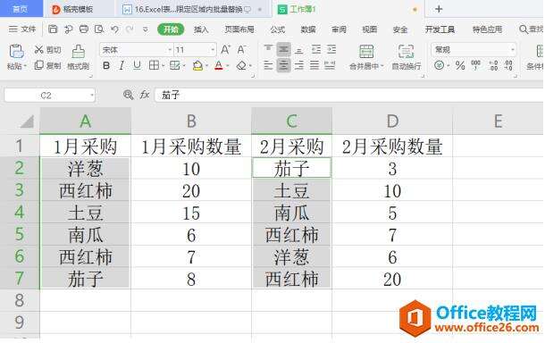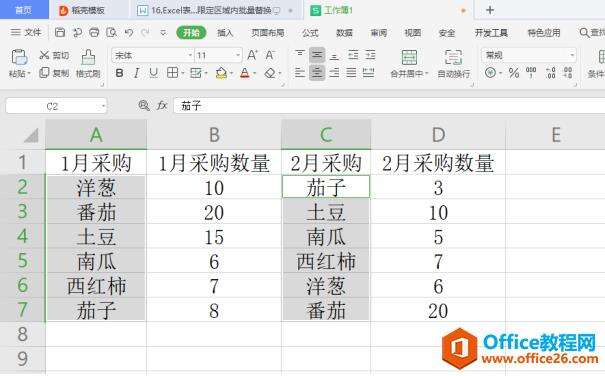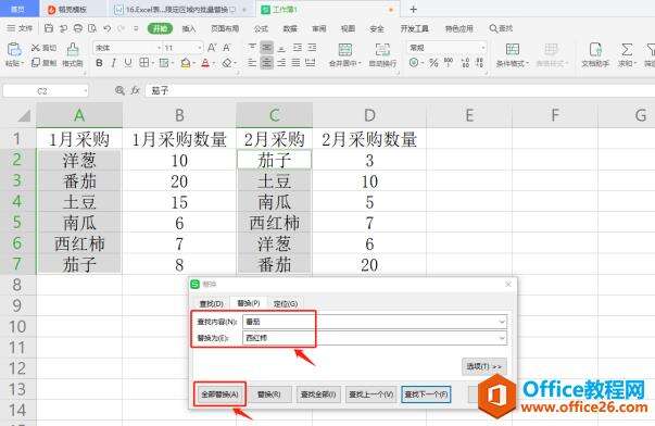 最后,选定单元格中的番茄都被替换成西红柿了: