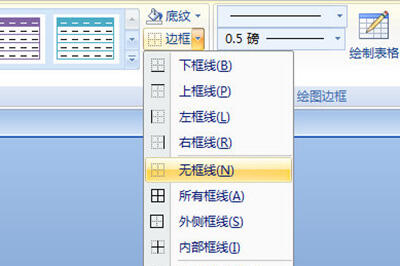 2、选中表格,点击上方的【边框】-【无线边框】。