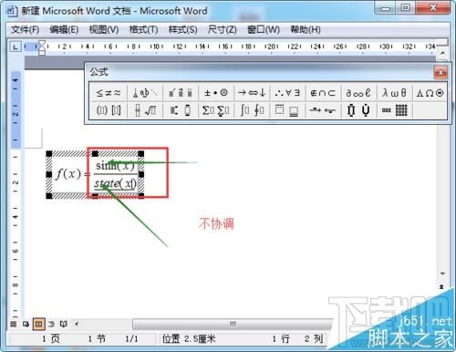 3、输入公式,公式如下图,由图中可以看出,在右侧的格式有些乱,有的是斜体,而有的不是斜体,看起来很不舒服;