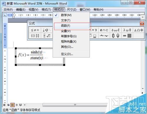 4、选中等号右侧的公式,单击“样式”,在下拉菜单中任意选中一个样式比如“函数”;