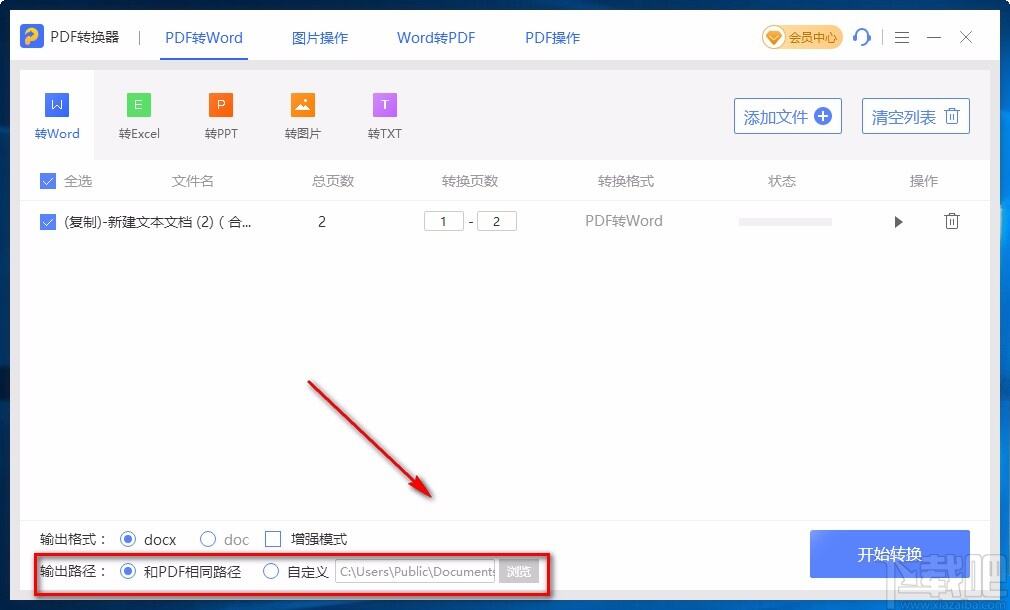 6.接下来在界面右下角找到“开始转换”按钮,点击该按钮就可以开始转换文件格式了,如下图所示。