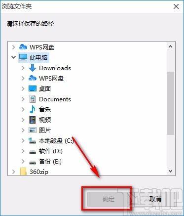 5.点击浏览按钮后,界面上会出现一个浏览文件夹窗口,我们在窗口中选中文件的保存位置后,再点击窗口底部的“确定”按钮就可以了。