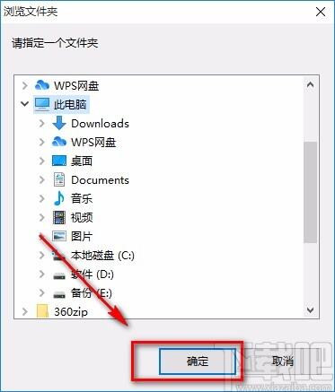 4.然后界面上就会出现一个浏览文件夹窗口,我们在窗口中选中文件的保存位置,再点击窗口底部的“确定”按钮即可。