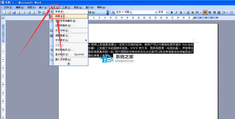 2、首先选择全部,然后在右击在选择-段落。