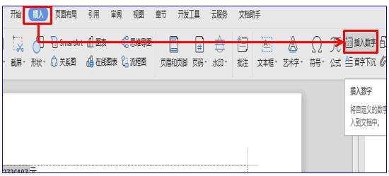 然后点击插入菜单栏,在工具栏的右边选择插入数字工具,如图2