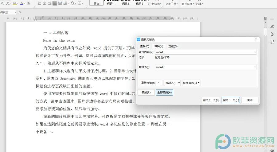 word文档,按下键盘上的Ctrl+H键打开“查找和替换”窗口,在“查找内容”和“替换为”处输入想要统计的字符串,比如我们这里输入“word”,点击“全部替换”;