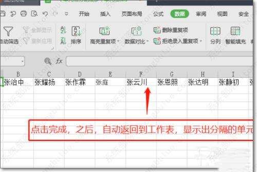 6、自动回到工作表,数据就被分隔出来了。完成效果图。
