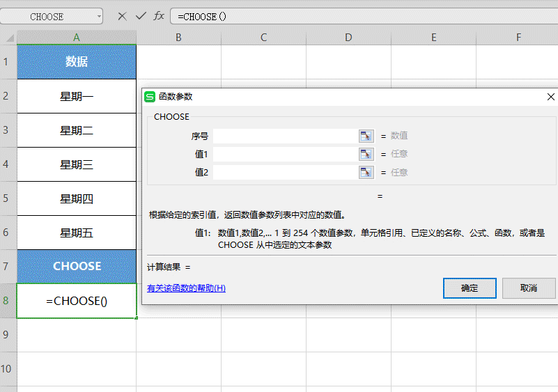 假设我们要返回“星期二”的值,在序号中输入2,数值1选择A2填入。