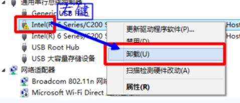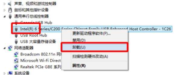 3.卸载后,由于没有问题的USB接口上插有设备,系统会自动刷新,重新安装。