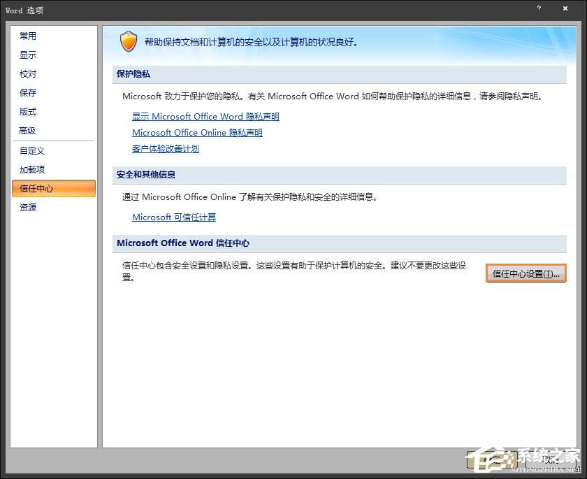 4、在信任中心,找到“信任中心设置”,然后点击进入。