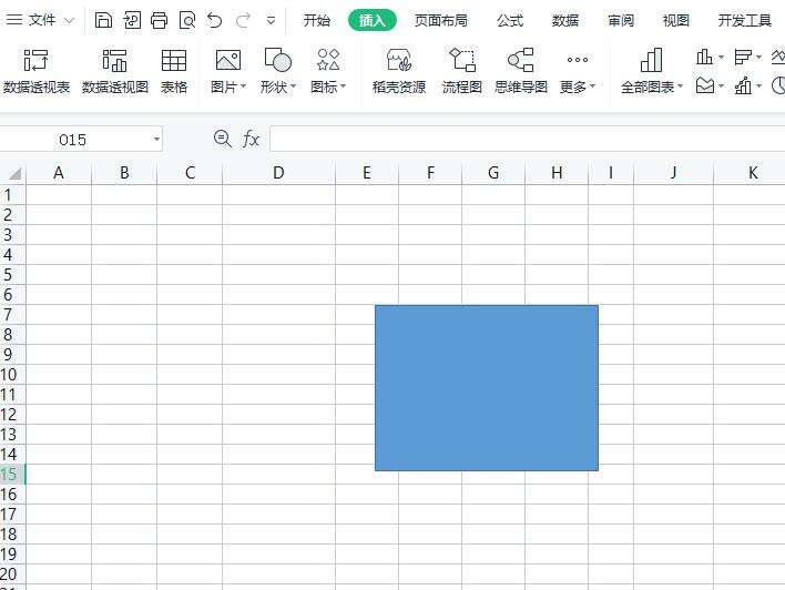 1.将wps软件打开,进入后在表格上插入形状并将其选中
