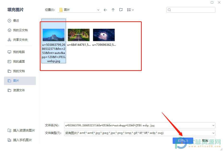 3.进入到图片文件的选择窗口后,将图片的文件夹点击右下角的打开按钮