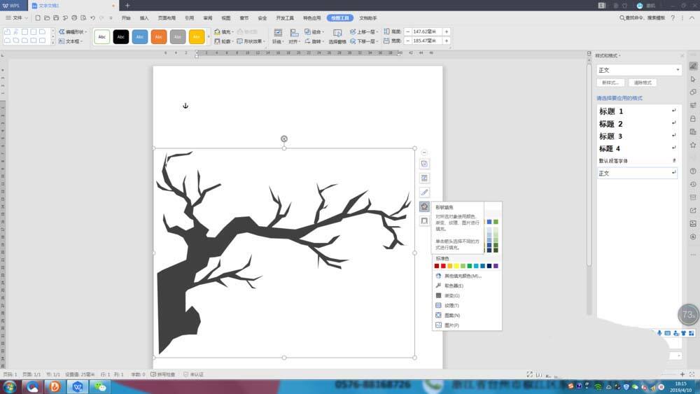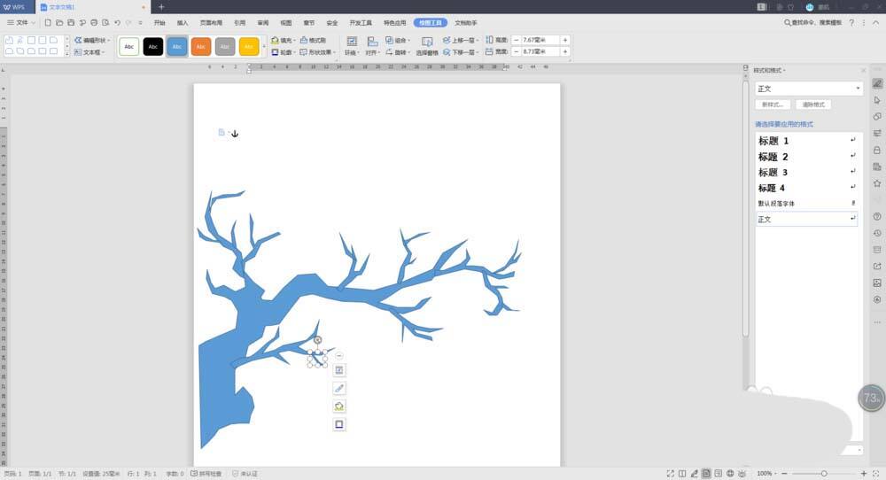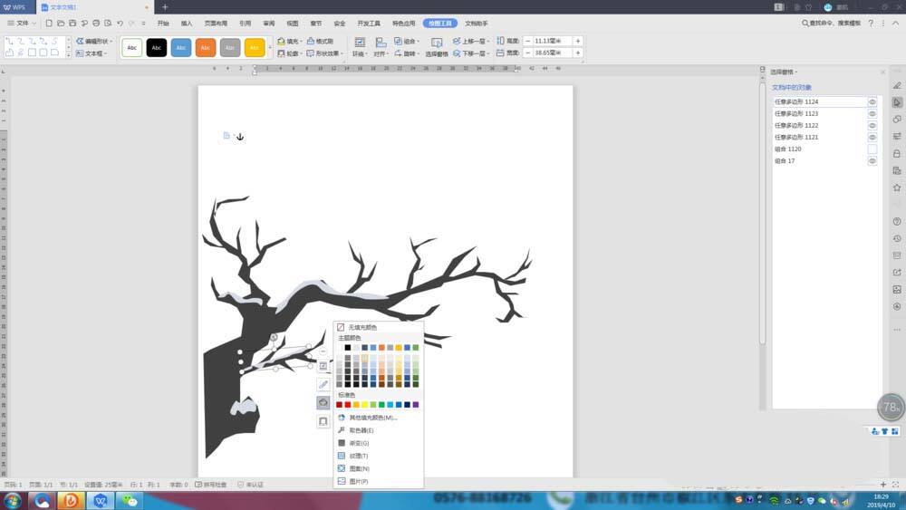 Word怎么绘制水墨画效果的的梅花冬景图?