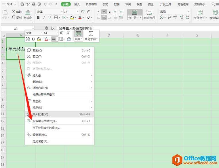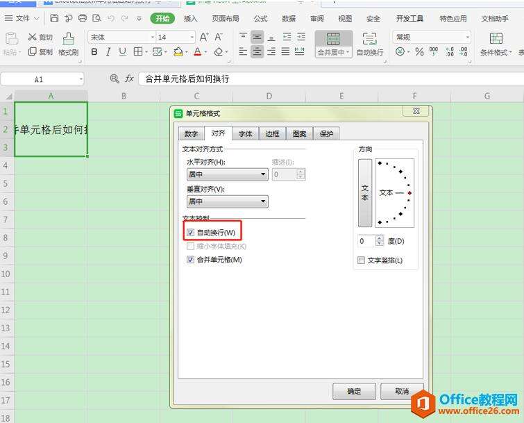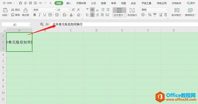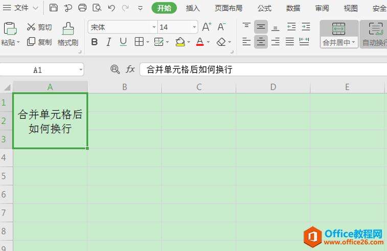 以上是为您收集整理的【WPS Excel合并单元格后如何换行】办公软件教程的全部内容,希望文章能够帮你了解办公软件教程WPS Excel合并单元格后如何换行。