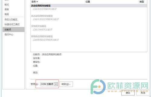 第五步:点击“管理COM加载项”右侧的“转到”;