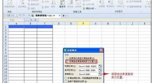 点击“高级过滤器”和“列表区(L)”选项。如图所示: