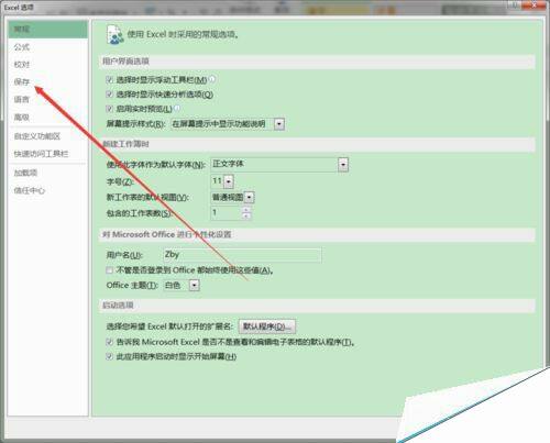 进入选项后,单击对话框左侧列表中【保存】按钮。
