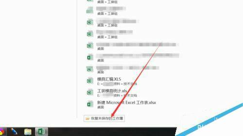 在【文件】菜单中点击【打开】按钮,在展开的【打开】列表中选择【最近使用的工作簿】选项,单击右下侧鼠标【恢复未保存的工作簿】按钮