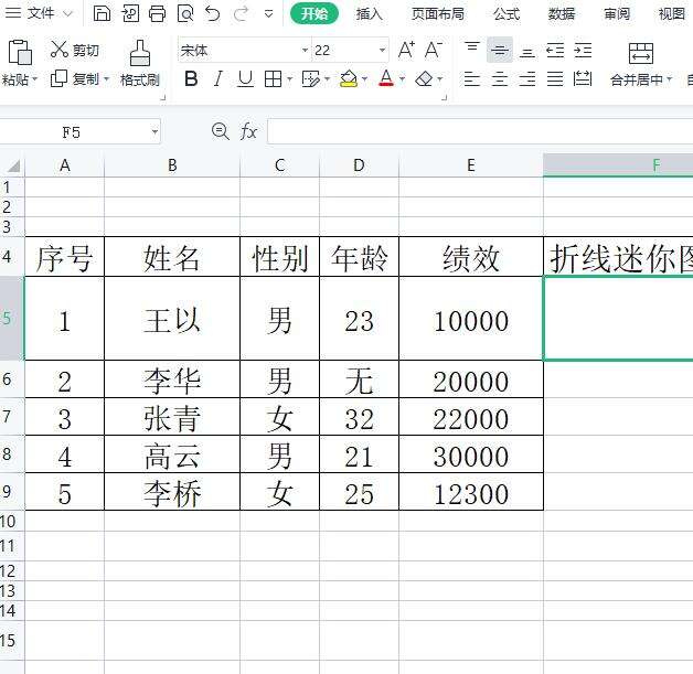电脑版wps表格如何插入迷你折线图
