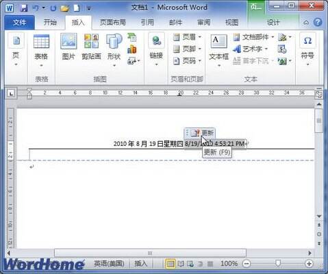 怎样在Word 2010文档中插入可以自动更新的日期和时间