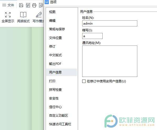 如果想要修改WPS文档中的用户信息,可以将文档打开之后点开文件图标将内容展开,然后打开选项窗口,再点开用户信息选项,最后将用户信息修改了之后就可以了。
