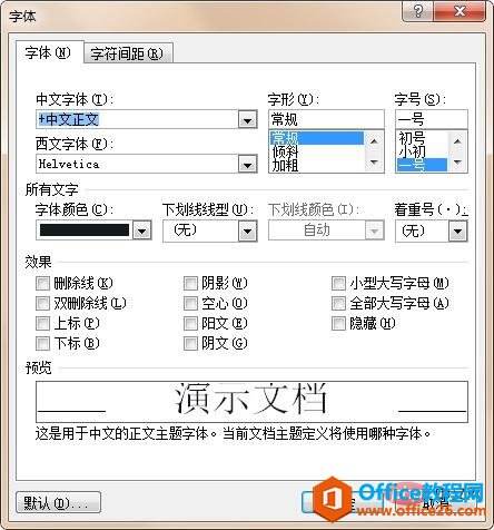 点击下拉菜单里的字体选项,进入字体设置窗口。如下图所示。