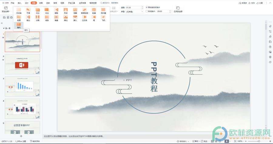以上是为您收集整理的【电脑版WPS演示文稿怎么设置随机切换效果】办公软件教程的全部内容,希望文章能够帮你了解办公软件教程电脑版WPS演示文稿怎么设置随机切换效果。