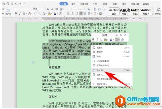 首先我们选中需要设置的文字,单击右键选择字体。